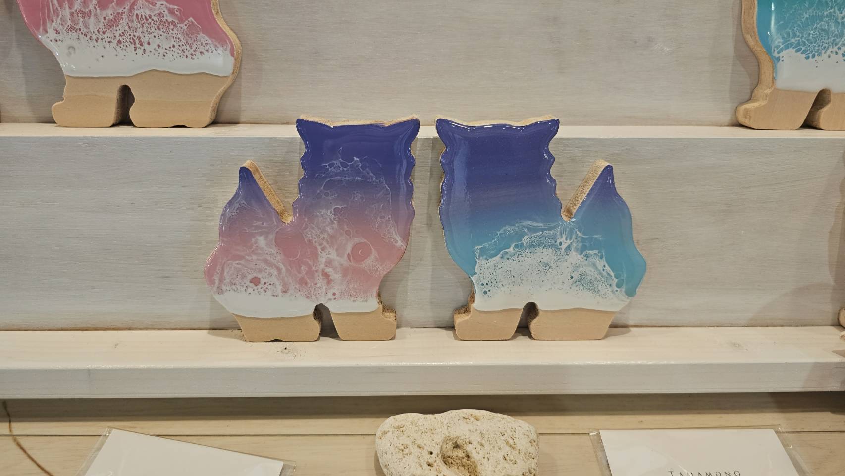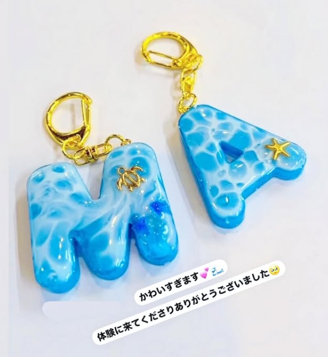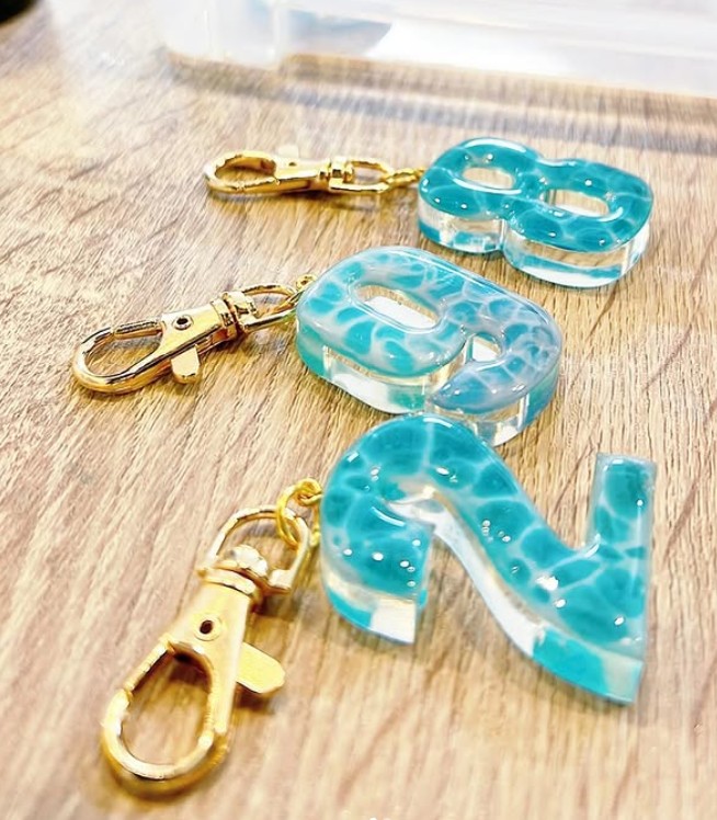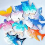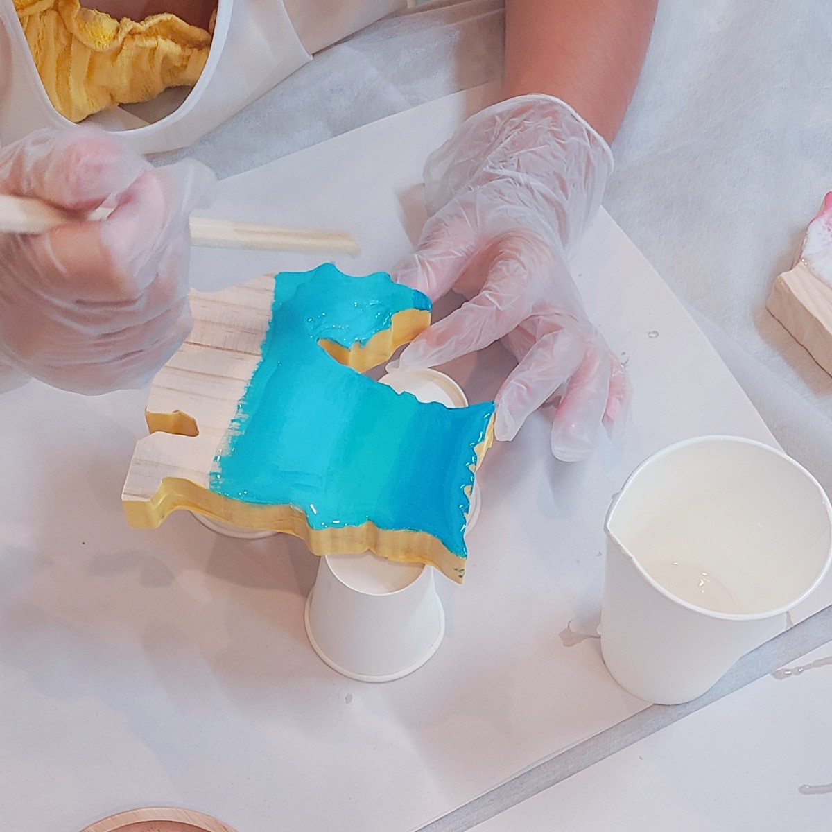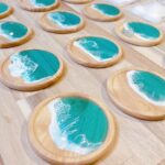 波レジンアートは、エポキシレジンに海の色と白波の色を着色して、お好きな資材に垂らして作成していきます。